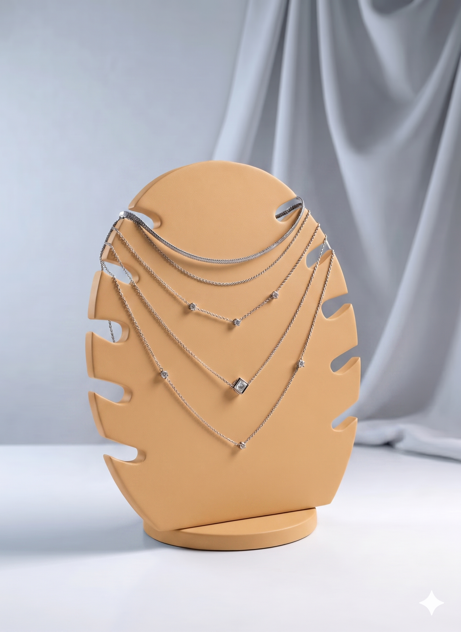 Elevate Your Vanity with the Art of Organization Tired of detangling a web of chains every morning? Step into a world where your jewelry isn’t just stored—it’s displayed. Inspired by the organic silhouette of a tropical leaf, our Premium Necklace Holder merges modern 3D-printing precision with elegant aesthetics.