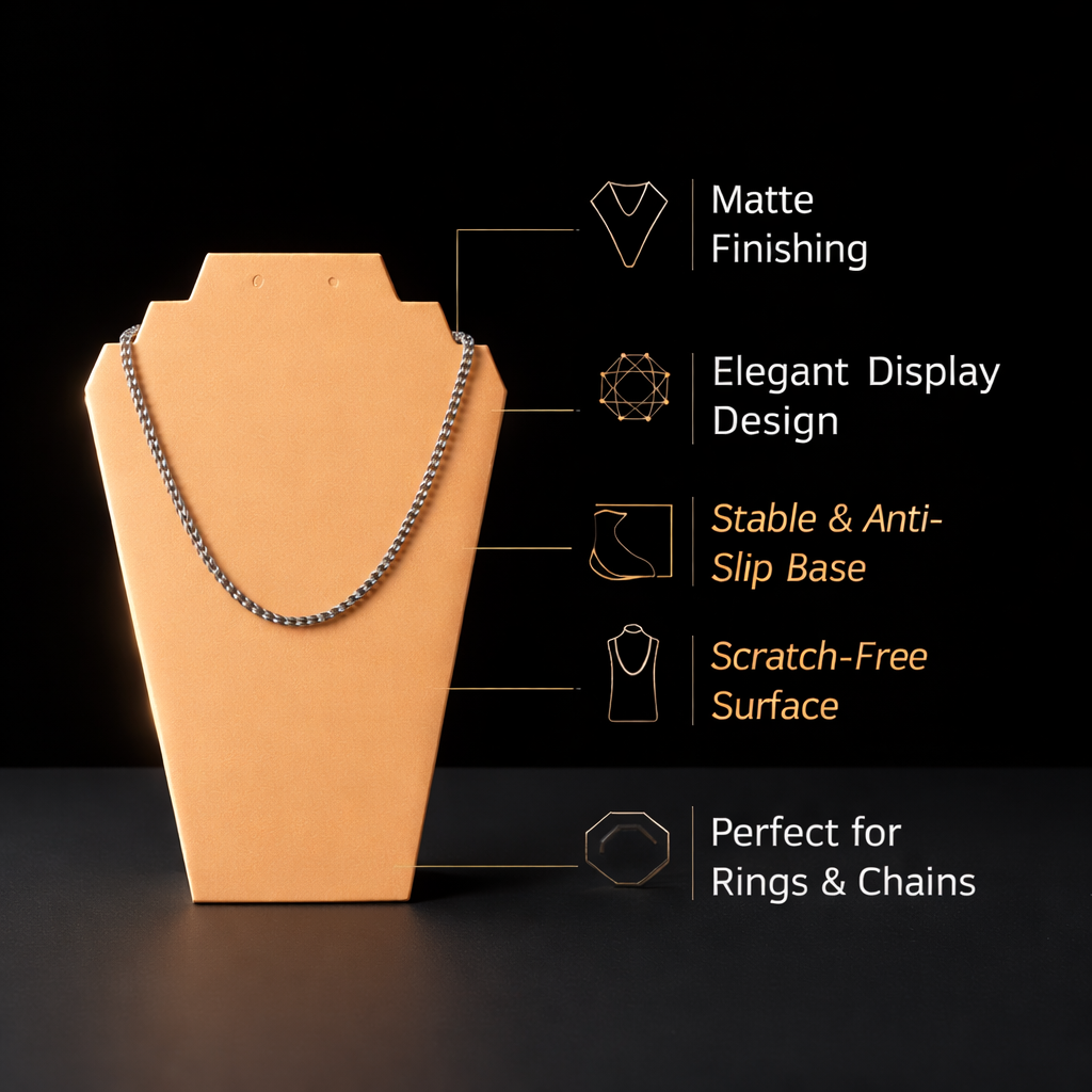 Its flat, angled surface ensures necklaces sit perfectly in place, offering a clear, tangle-free display that highlights every detail. The sturdy construction provides stability, while the lightweight design allows easy repositioning whenever needed.