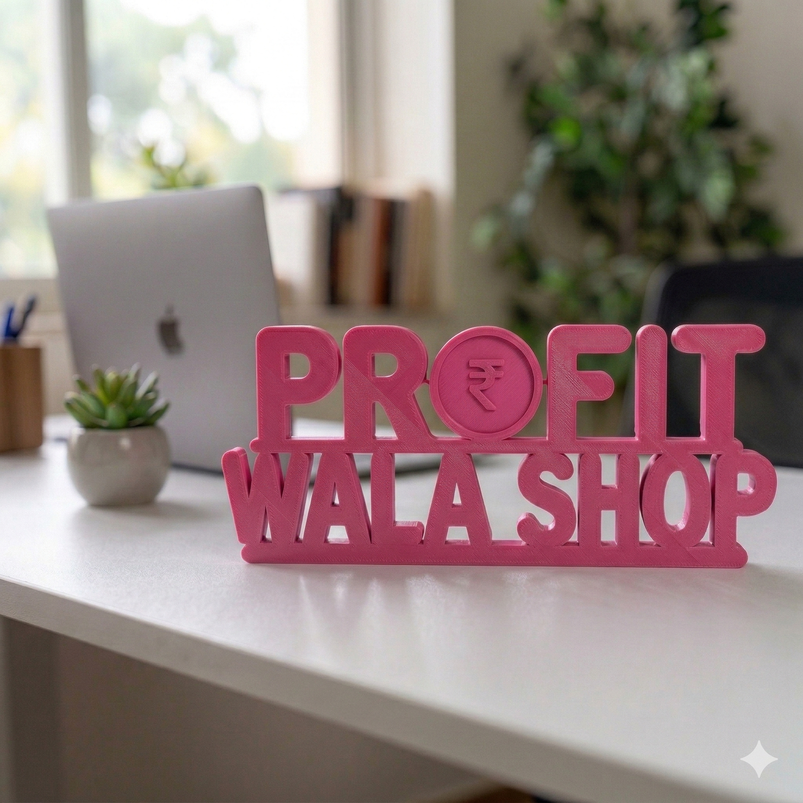 The Profit Wala Shop 3D Printed Name Decor is a modern and creative desk display designed for shop owners, entrepreneurs and business workspaces. Made using advanced 3D printing technology, this decorative name piece adds personality and branding to your shop counter, office desk or store interior.