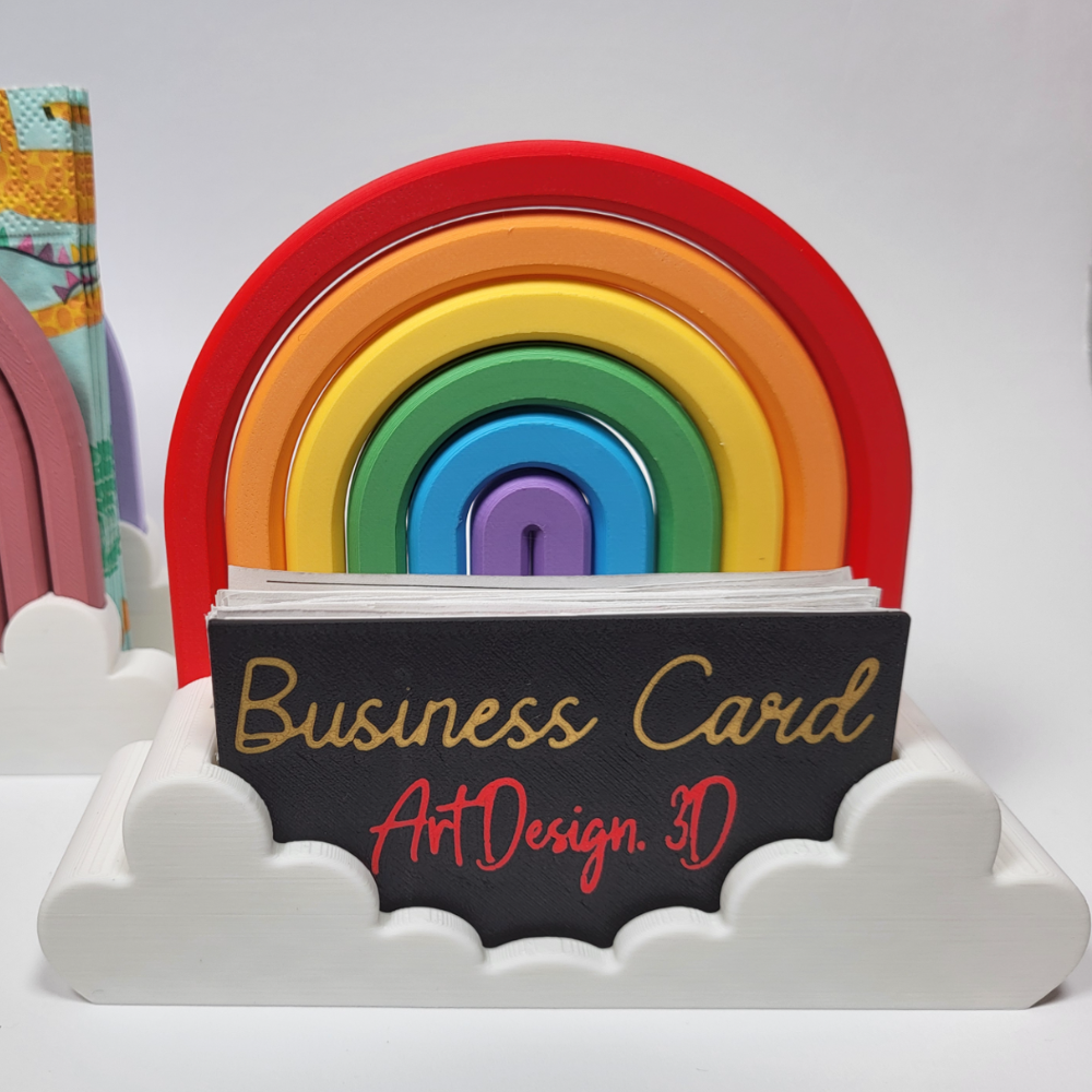 A stylish Rainbow 3D Printed Business Card & Napkin Holder designed for offices, cafés, restaurants, reception desks, and workspaces. Compact, durable, and eye-catching—perfect for professional desk organization and corporate gifting.