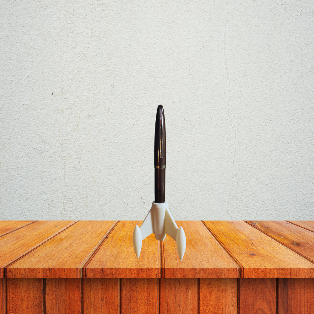 Stylish rocket spaceship pen holder – a perfect corporate gift for industries, startups, and offices. Customizable design for clients, employees, and events.