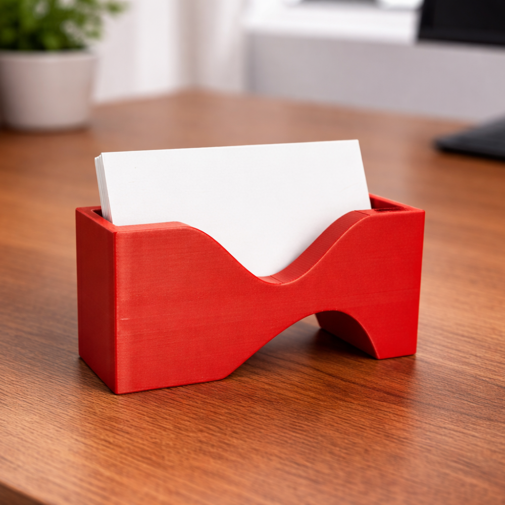 Solva Business Card Holder is a premium 3D printed desk organizer crafted for modern workspaces. Designed with a clean and minimal form, it keeps visiting cards easily accessible while adding a professional touch to desks, reception counters, and meeting rooms.