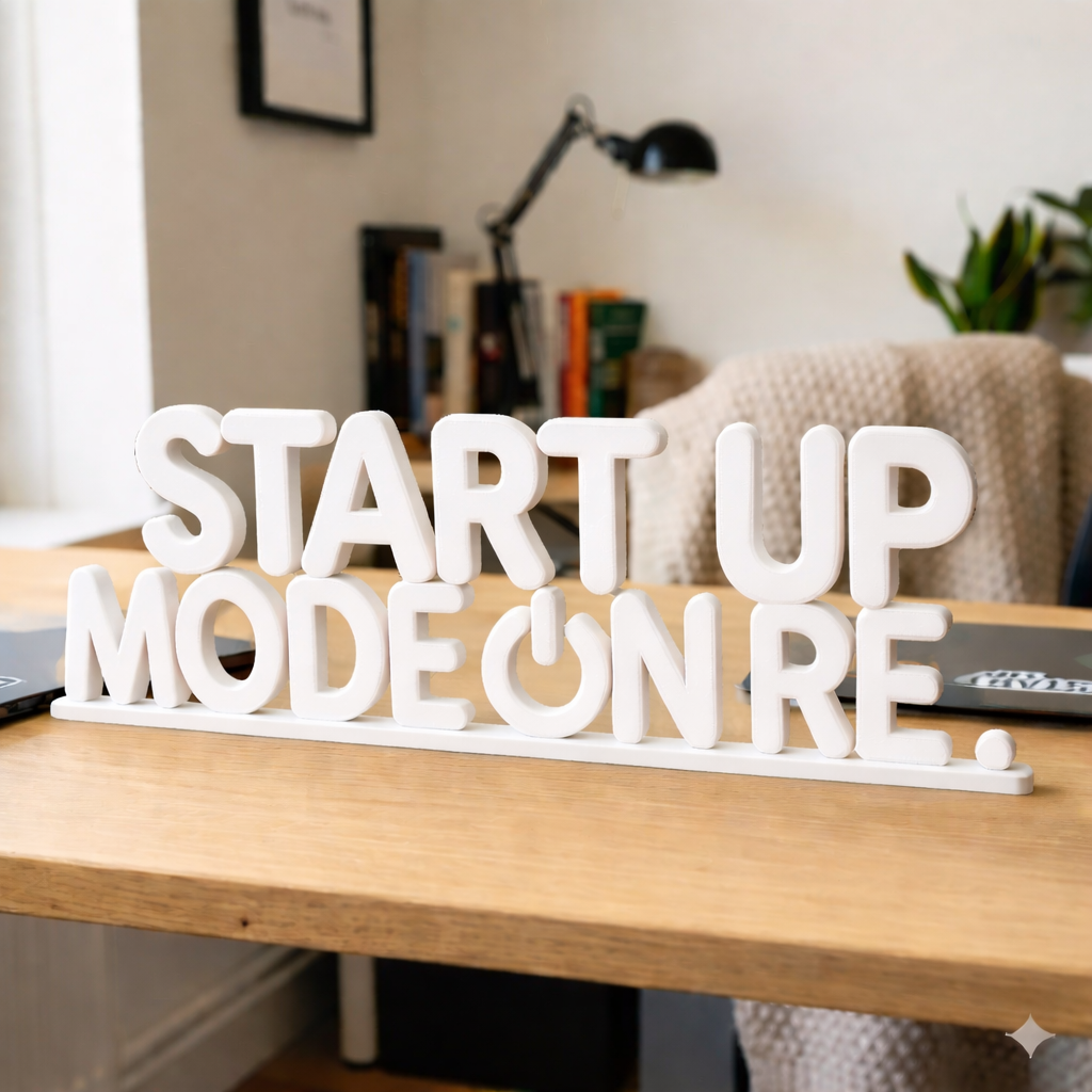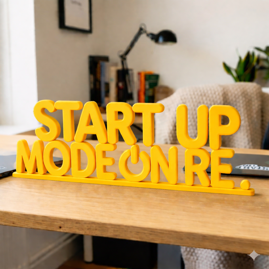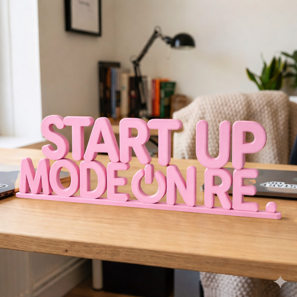 Bring energy and attitude to your workspace with the Start Up Mode On Re 3D Printed Desk Sign. Inspired by startup culture and everyday hustle, this desk accessory adds a fun yet powerful statement to your desk.