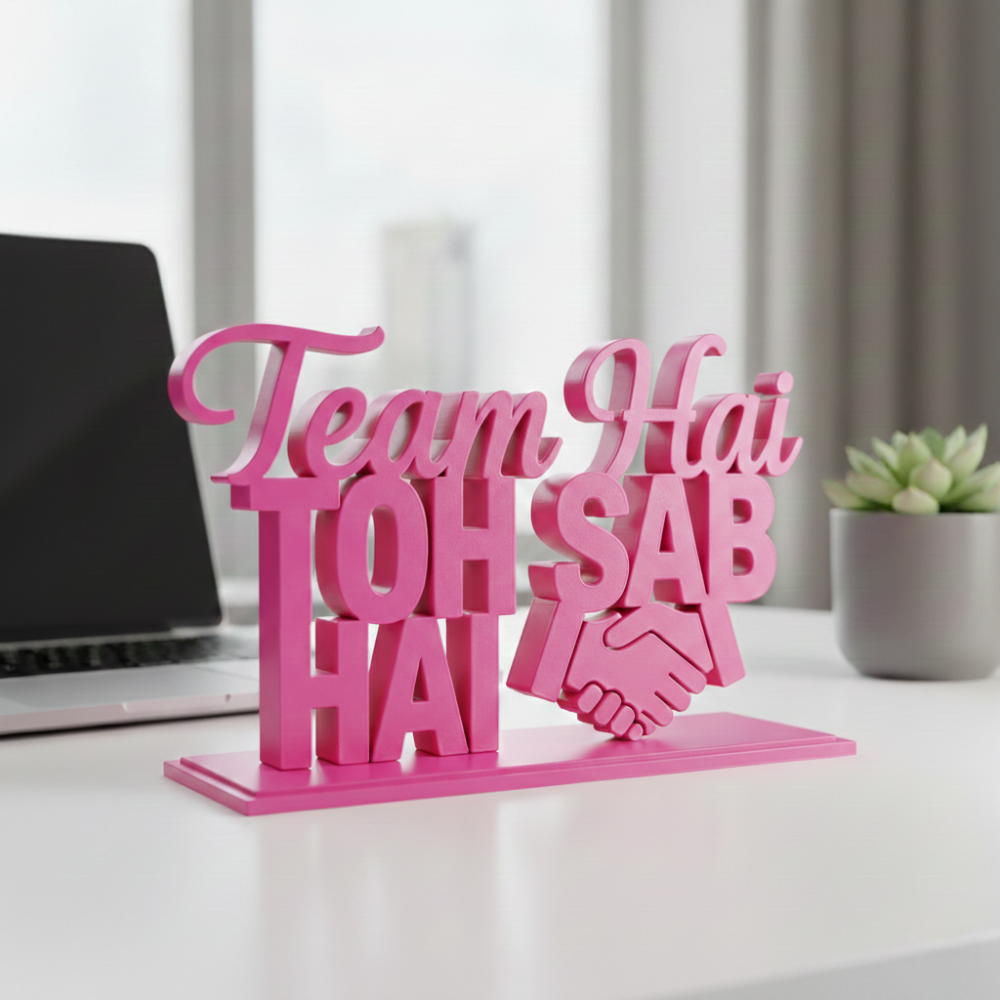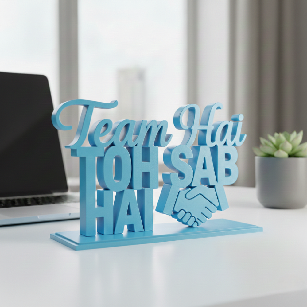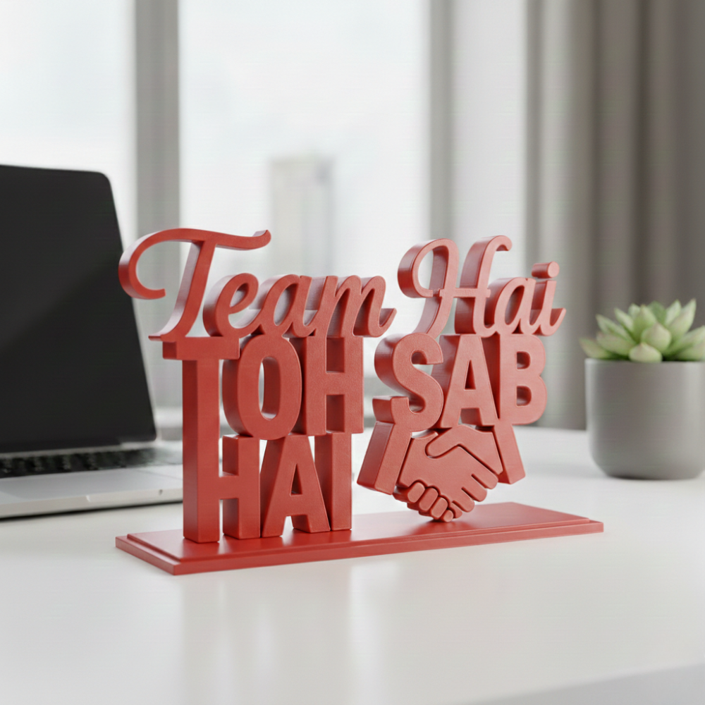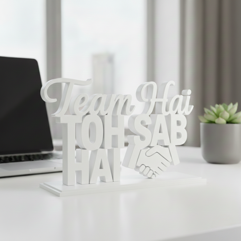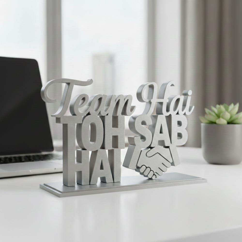 This 3D printed motivational desk decor is designed to represent unity, collaboration, and team spirit. Whether placed on an office desk, reception table, meeting room, or home workspace, it instantly adds meaning and motivation to the environment.