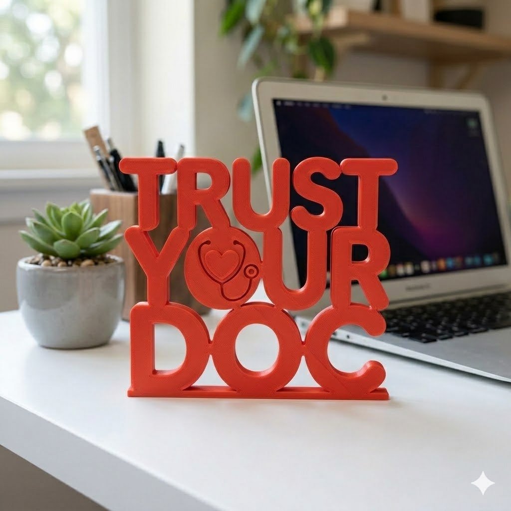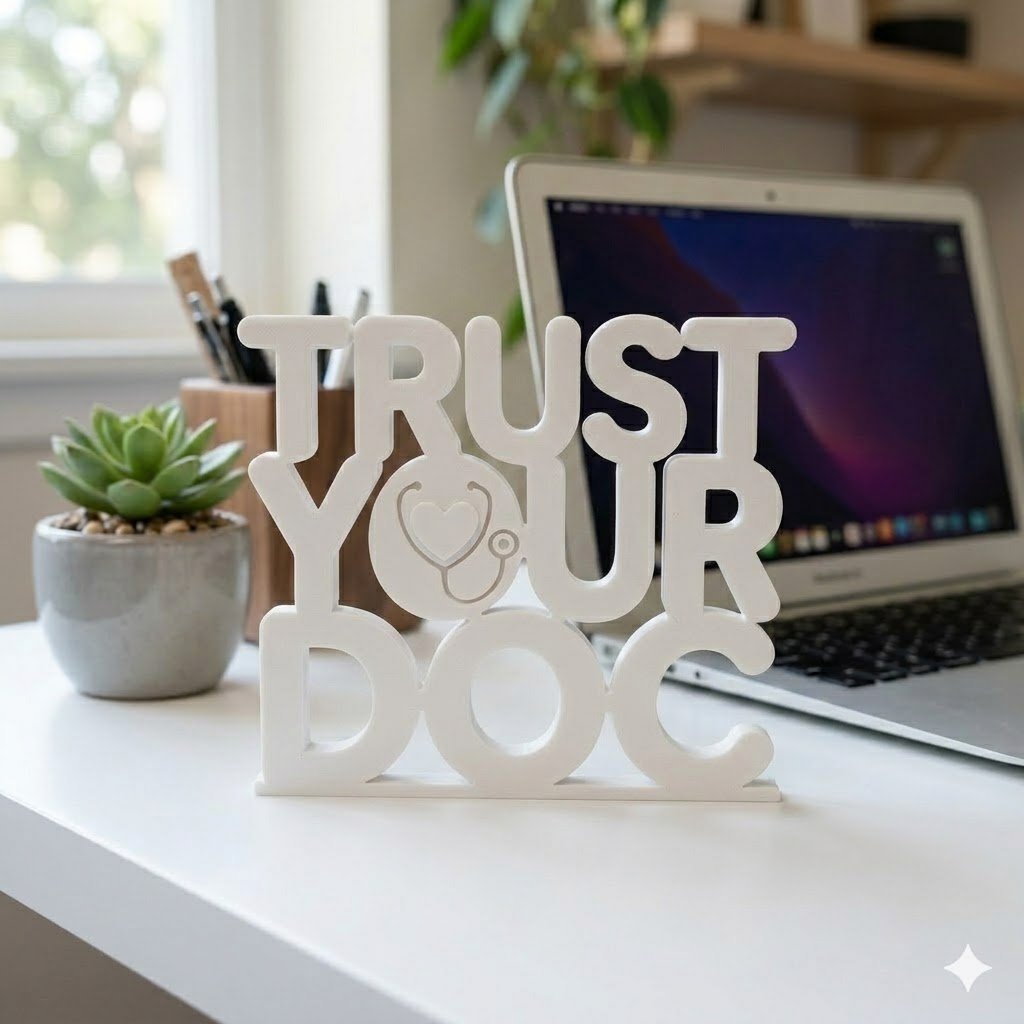 The Trust Your Doc 3D Printed Name Plate is specially designed for medical professionals who want to create a strong impression on patients. This unique desk sign adds a sense of credibility, professionalism, and trust in any healthcare environment.