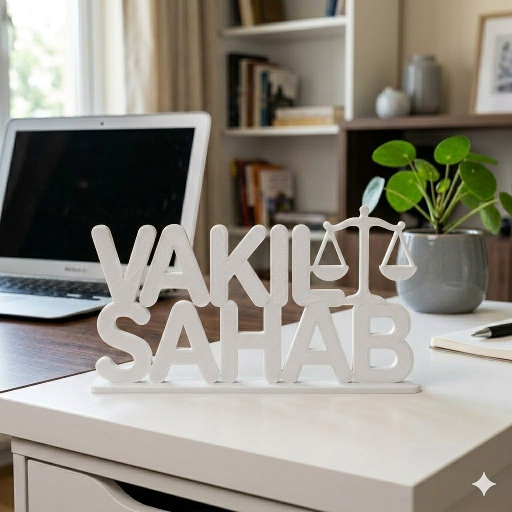 Upgrade your workspace with this professionally designed 3D printed “Vakil Sahab” desk sign, specially made for lawyers, advocates, and legal professionals.