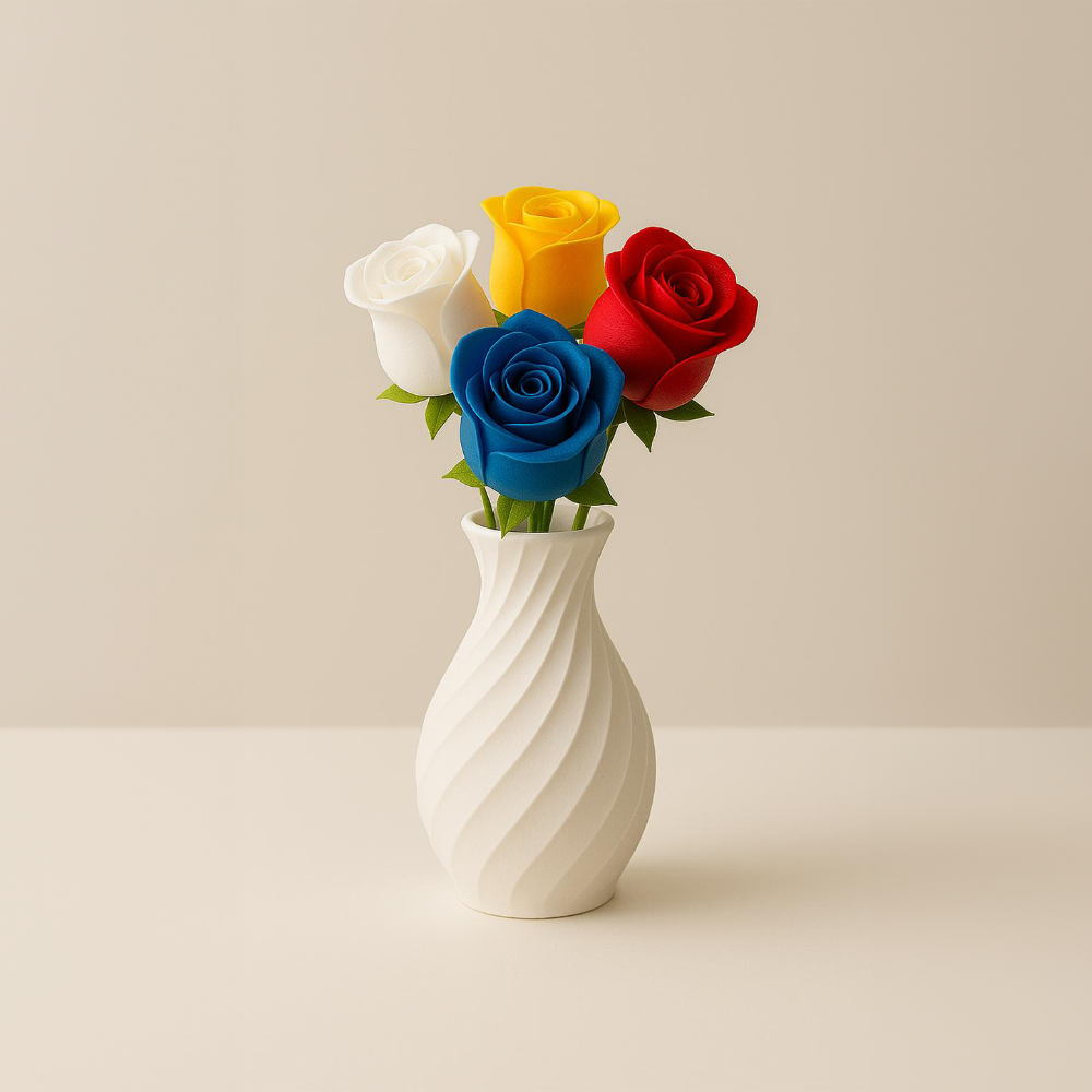3D printed vase for flowers bouquet designed for office desks, home decor, corporate gifting, events, and premium tabletop decoration. Lightweight, modern, durable, and suitable for fresh or artificial flowers.