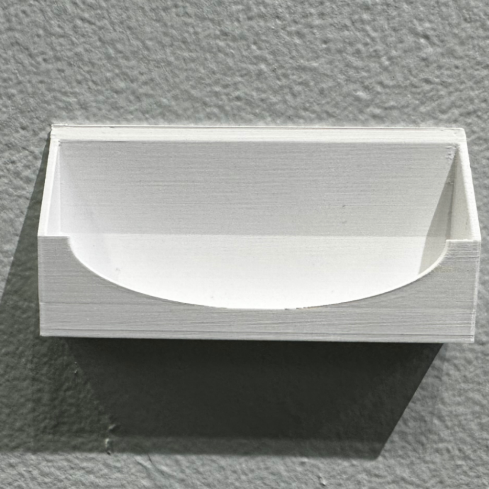 Being wall mounted, it helps save desk and counter space while keeping your business cards visible and presentable. The 3D printed design allows precise dimensions, lightweight construction, and a modern look suitable for both professional and industrial environments.