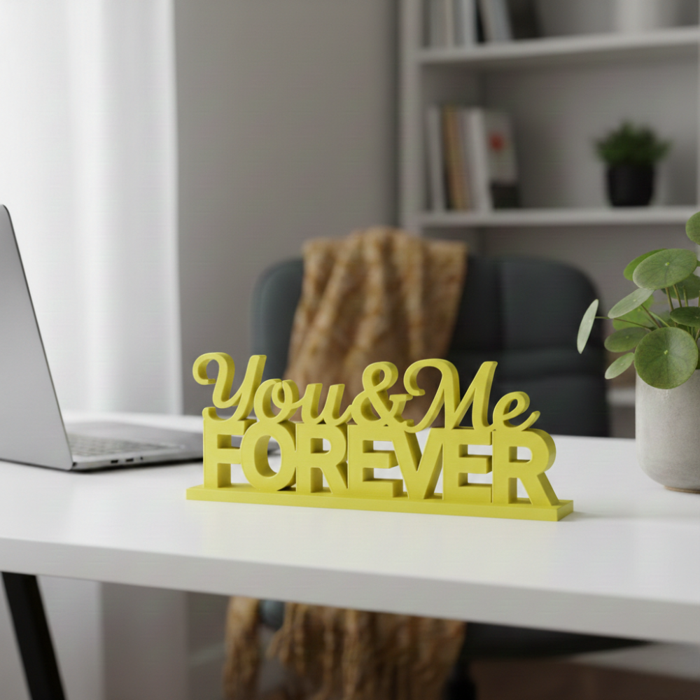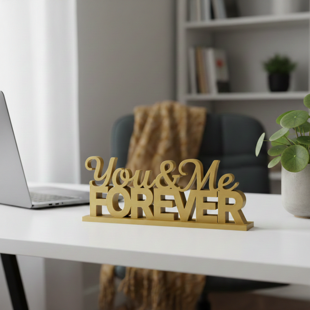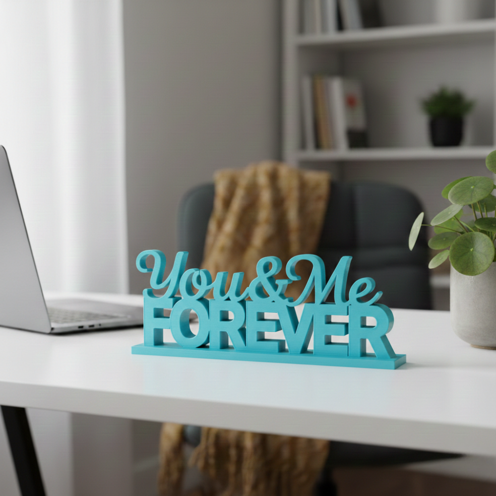 The You & Me Forever 3D Printed Decorative Showpiece is a modern, elegant gifting solution crafted using advanced 3D printing technology. Designed to symbolize togetherness and lasting bonds, this product blends emotional value with minimalistic décor aesthetics.